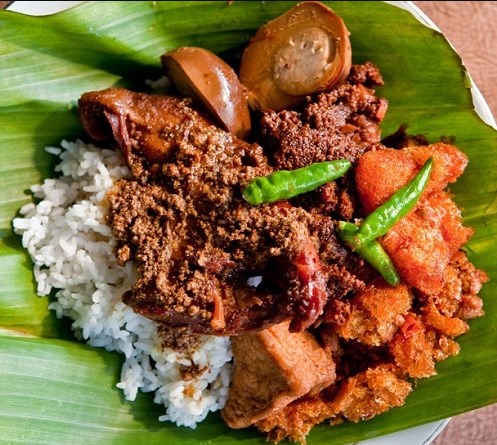 3. Keluarkan serai, rempah daun, dan lengkuasnya, kemudian sajikan gudeg yang telah matang tadi.